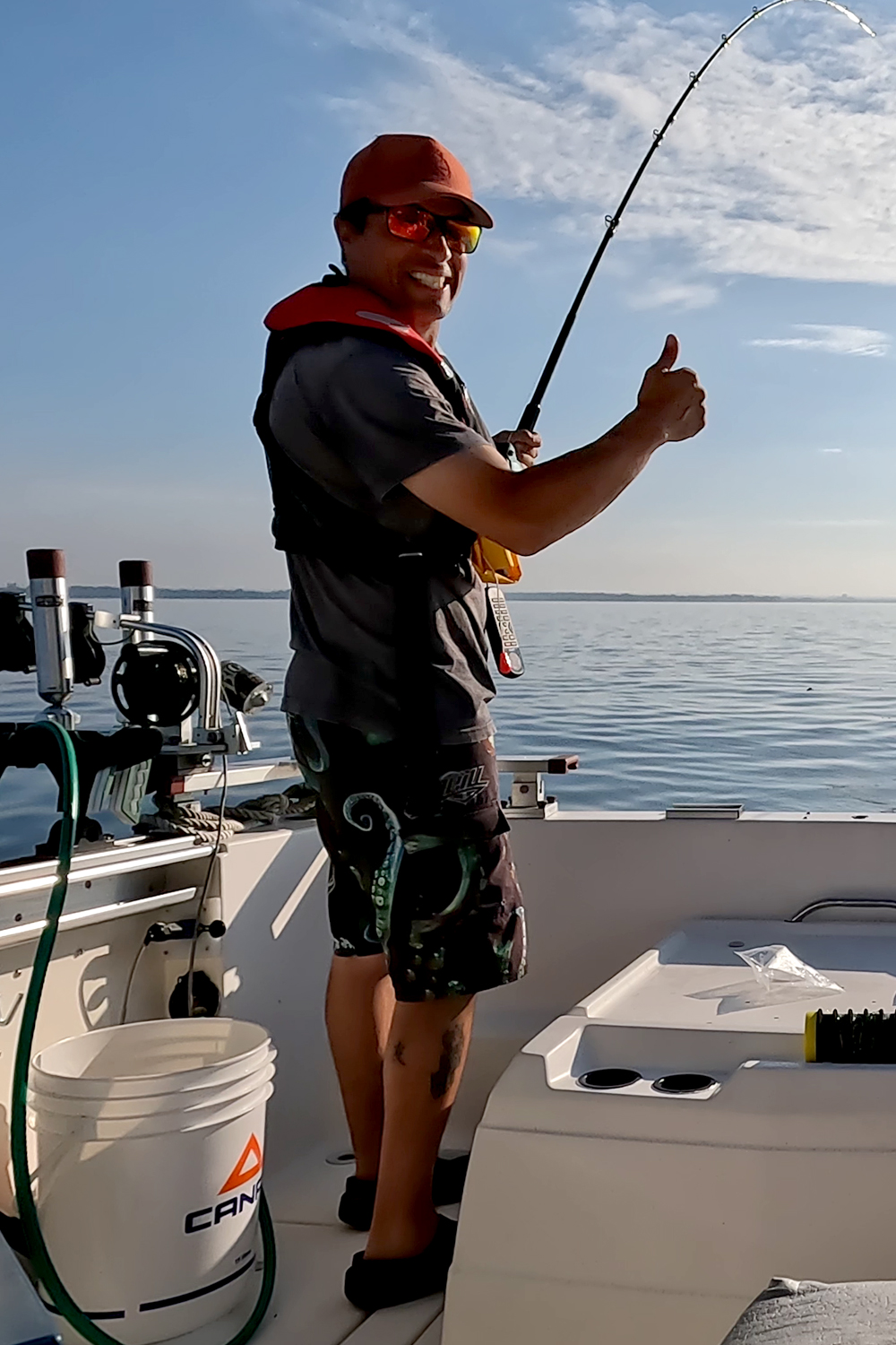 Venez vivre une expérience de pêche inoubliable sur le lac Ontario. Étienne Verreault, guide de pêche expérimenté et capitaine vous accueille à bord du Salmon Seducer.